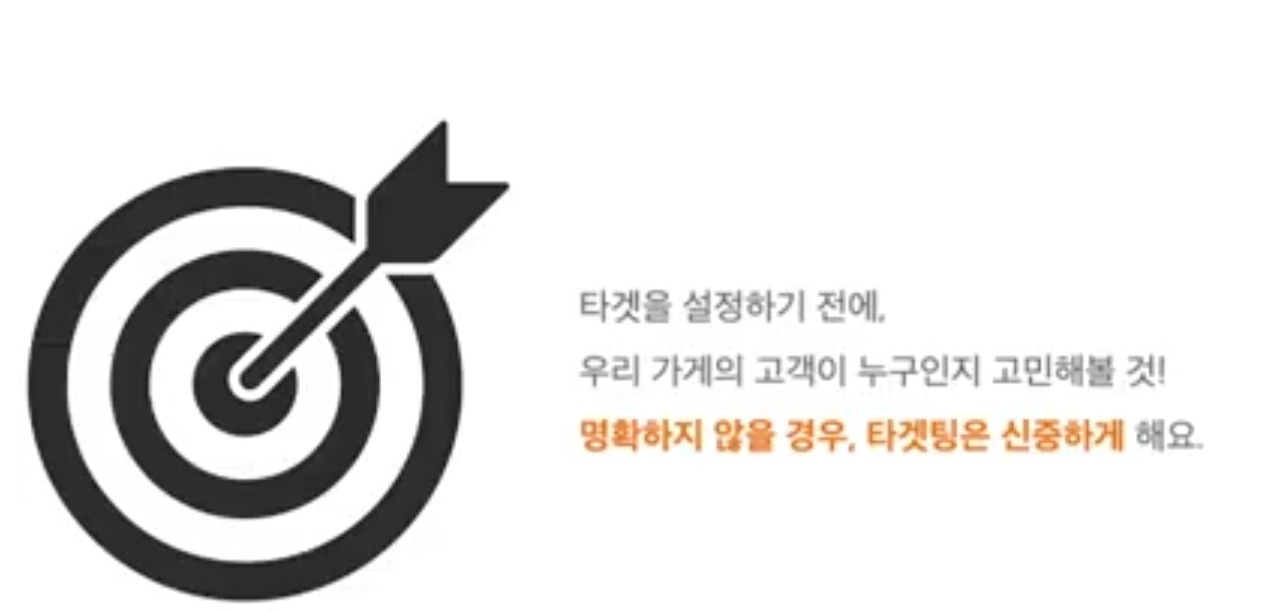 타겟 설정 시 주의할 점은 성별이나 연령 타겟팅을 설정하는 게 무조건 좋냐 보면 그건 절대 아니라고 합니다. 가게 업종이나 가게 고객군 특징에 따라서 오히려 성별 연령 타겟팅을 했을 때 광고비가 더 비싸지거나 광고 효과가 낮아지는 부정적인 효과가 생길 수도 있다고 합니다. 성별 연령 타겟을 설정하기 전에 가게의 고객이 누구인지 곰곰이 생각을 해 줘야 한다고 합니다. 가게를 주로 방문하는 고객 , 모객하고 싶은 고객군이 명확하지 않다면 성별 ,연령 타겟팅을 신중하게 해 줘야 한다고 합니다. 타겟팅을 한다는 건 결국 일부 잠재 고객에게만 가게 광고를 보여주는 것으로 가게의 고객이 어떤 성별과 연령인지 명확하지 않은 상태에서 특정 사람만 골라서 광고를 보여준다는 것은 고객이 될 수 있는 잠재 고객에게는 광고를 보여주지 않고 놓치겠다라는 의미라고 볼 수도 있기 때문이라고 합니다.
