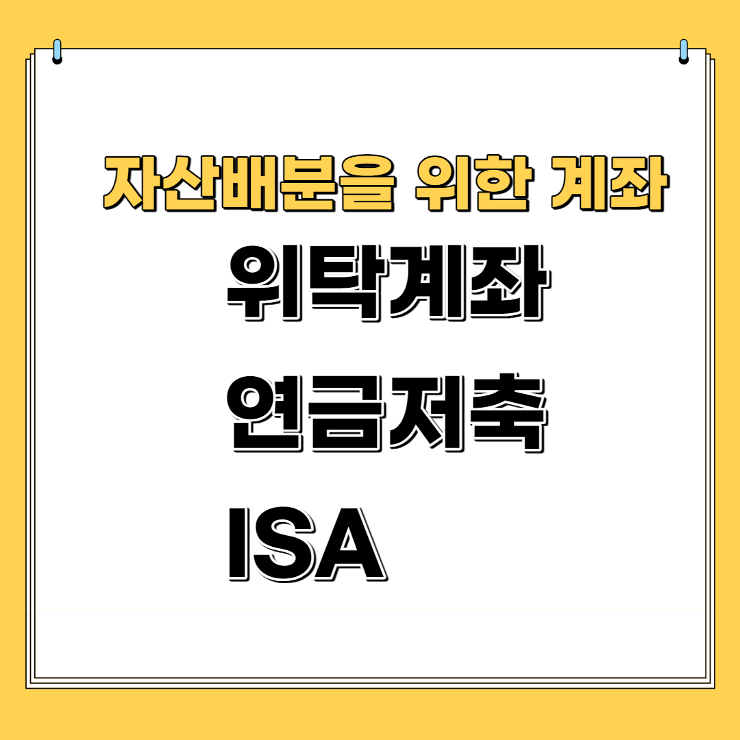 자산배분관리 가능한 계좌에 대해 알아보려 합니다. 위탁계좌, 연금저축 그리고 ISA의 의미랑 성격 등을 대해 정리해 보았습니다.