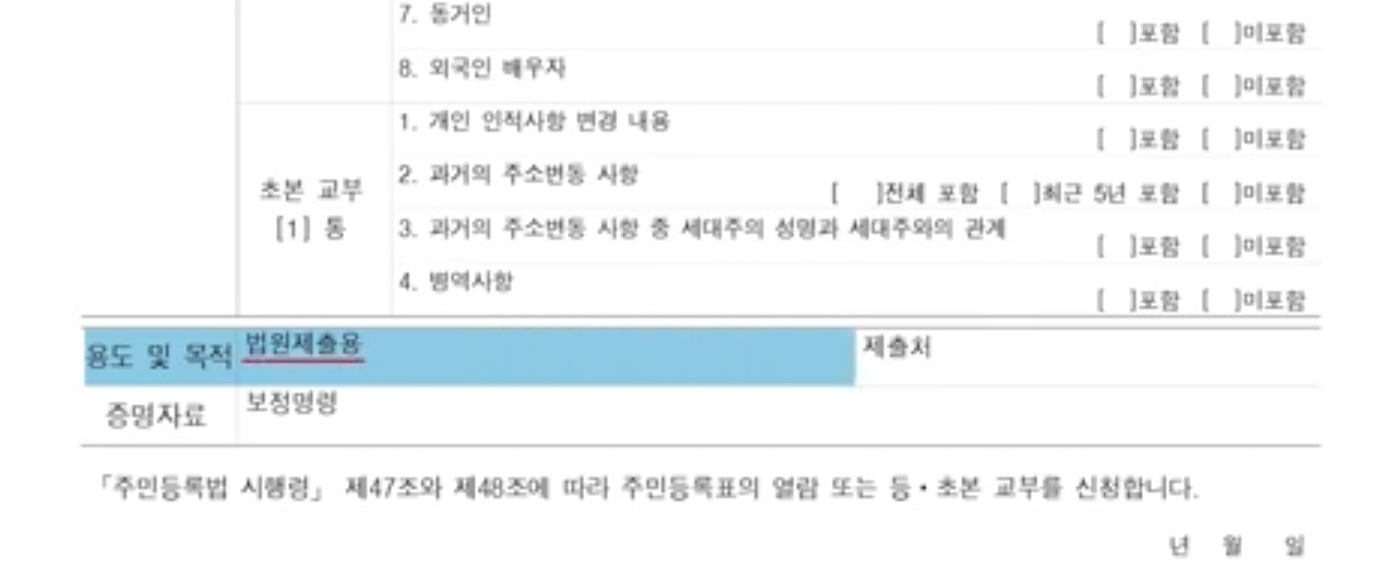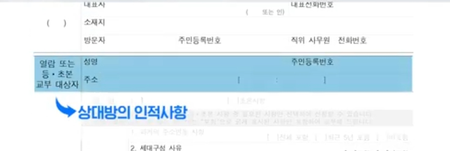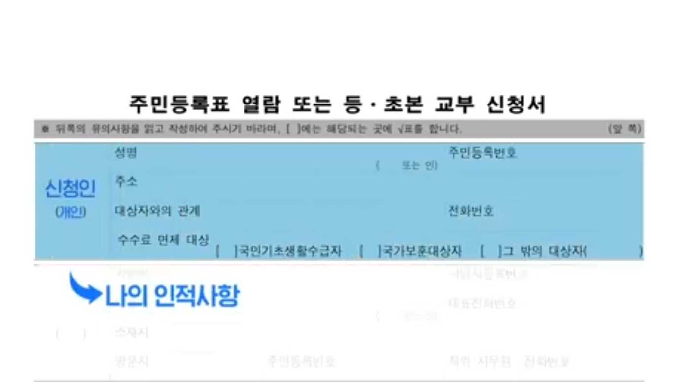 열람 또는 등,초본 교부 대상자에는 상대방의 인적사항을 기재하면 된다고 합니다.