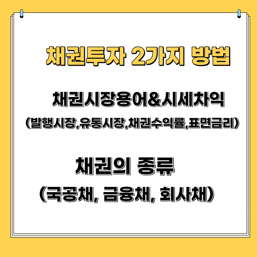 채권의 투자 방법과 채권의 용어, 채권의 종류에 대해 알아본 내용을 정리해 보았습니다.